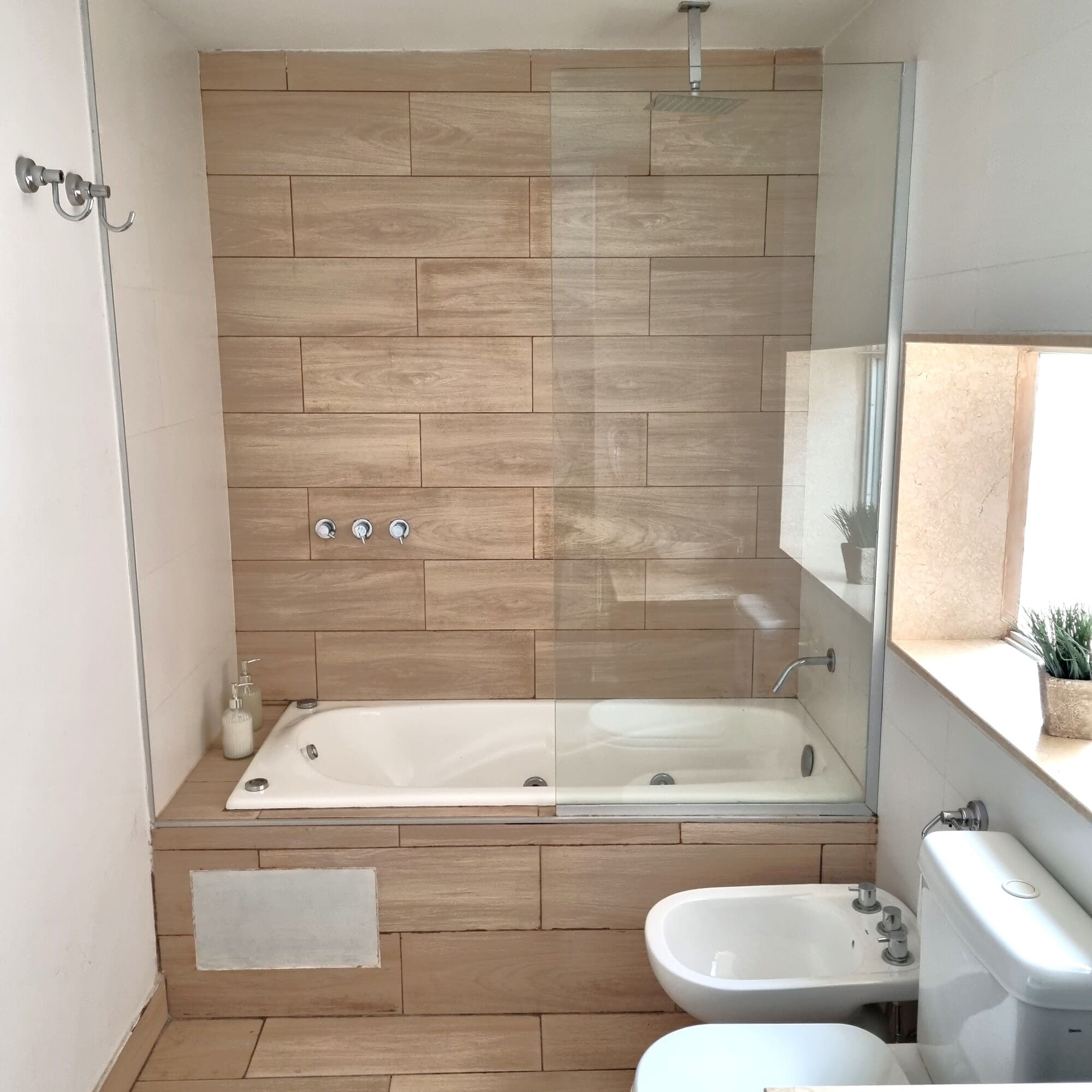 Departamento de 1 dormitorio con sofá cama en estar-comedor (armado queda como cama doble de 1.40 de ancho).